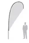The innovative-shaped teardrop flags are self-tensioning through a telescopic pole.