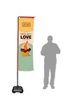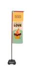 Supply of the rectangular flag structure with black base and rod, with print on flag visible on both sides.