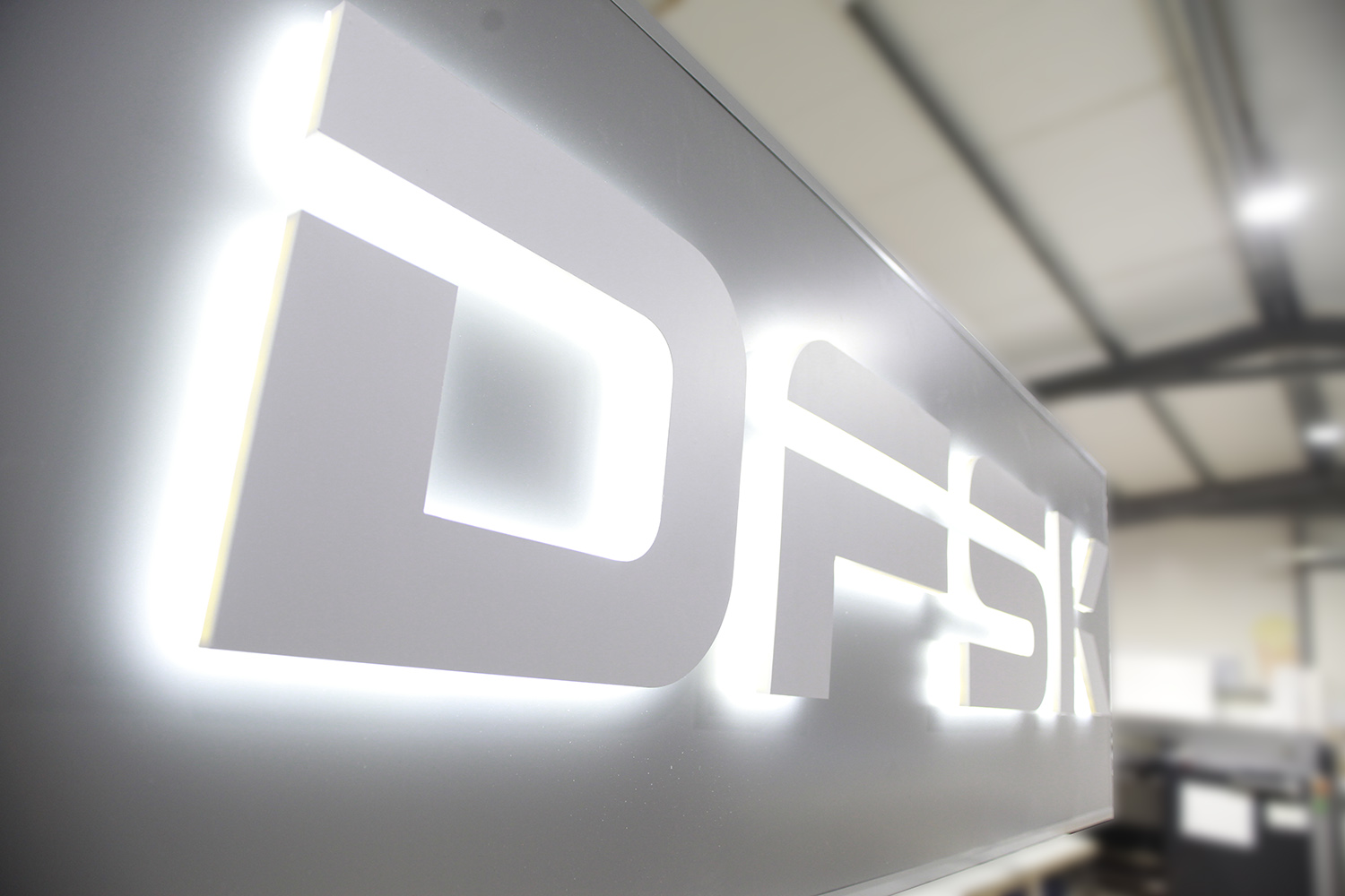 Sign with 3D logo in luminous relief