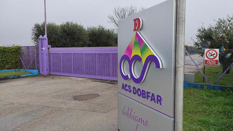 The sign is made up of an aluminum panel (3mm thick) and a 3D relief logo and letters, made of 3 cm thick plastic material.